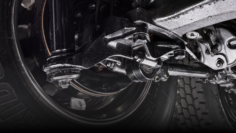 Para otorgar productividad y protección, las cámaras de frenos traseras están ubicadas delante del eje trasero-trasero para proporcionar espacio libre para pavimentadoras asfálticas y otros equipos montados en la parte posterior del camión.